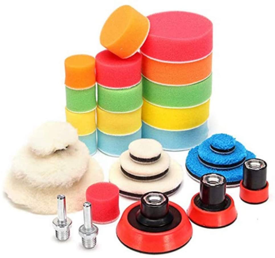 YonCog Polishing Pad Kit 123 Inch Car Polishing Pad Waxing Sponge Wheel Cleaning Wool Polishing Pad 29 Pieces Polishing Set Buffing Pads